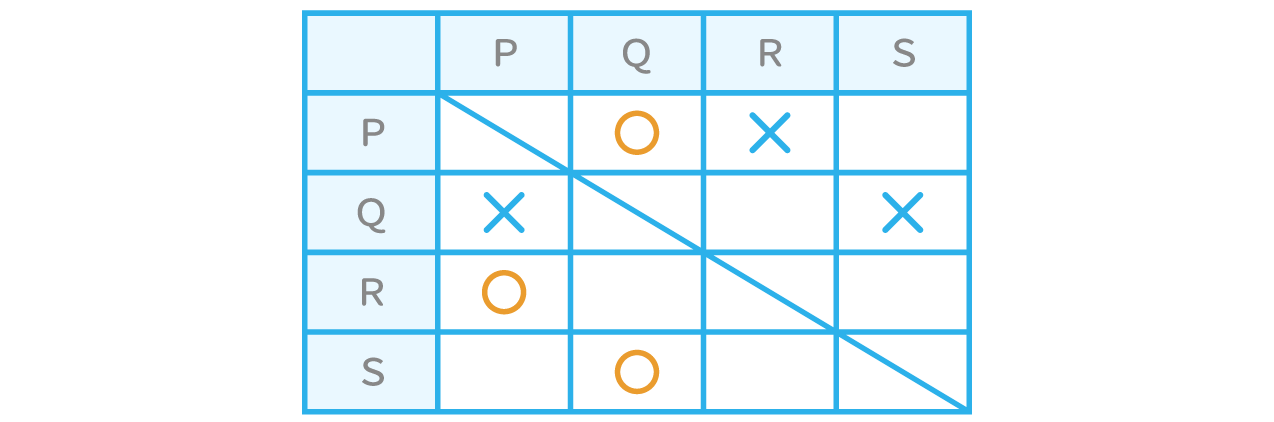 P、Q、R、Sの4チームが、バスケットボールの試合を総当たり戦で行った。その試合結果について、次のことが分かっている。
