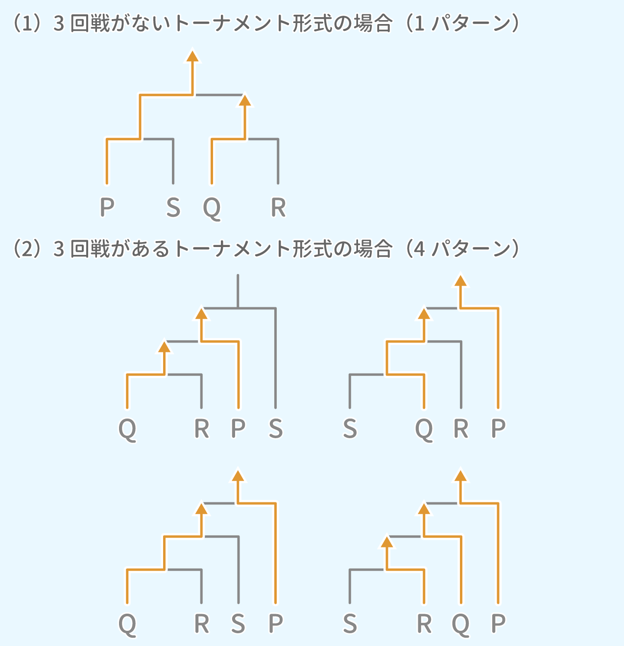 P、Q、R、Sの4人でテニスのトーナメント戦をすることになった。その結果として、以下のことが分かっている。